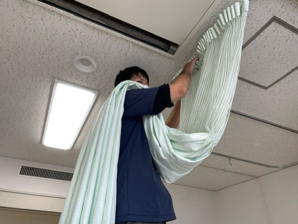 病院や介護施設などを訪問し、カーテンの交換作業を行います。